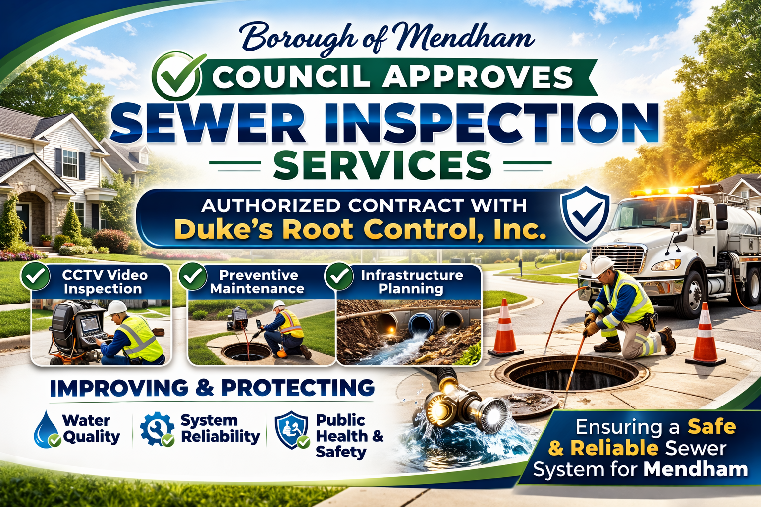 What happens next: With funding certified and the contract awarded, Duke’s Root Control, Inc. will perform the scheduled inspection and maintenance services for the Borough’s sanitary sewer system.
