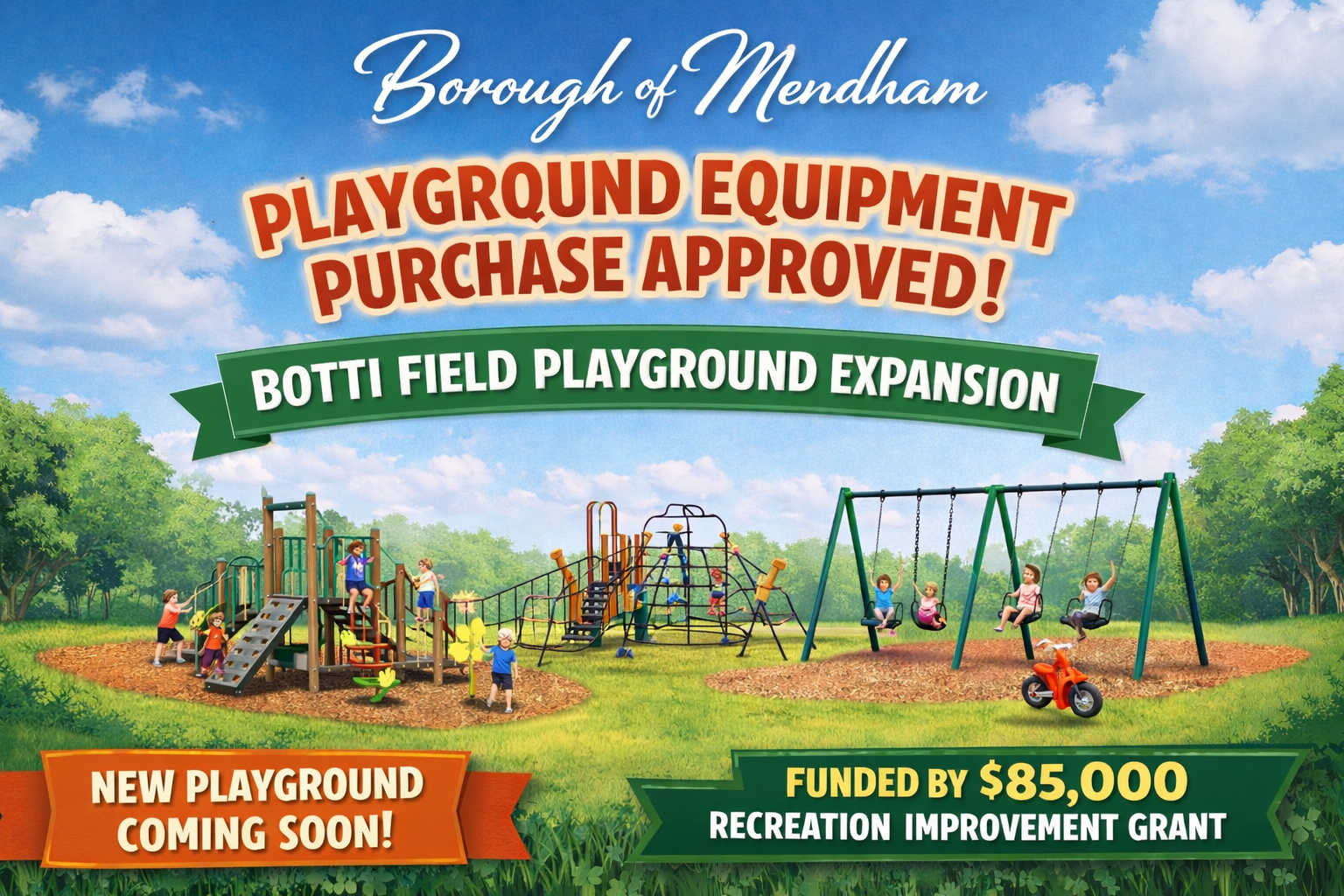 What happens next: With authorization in place and funding certified, the Borough can move forward with ordering and installation of the new playground equipment at Botti Field.